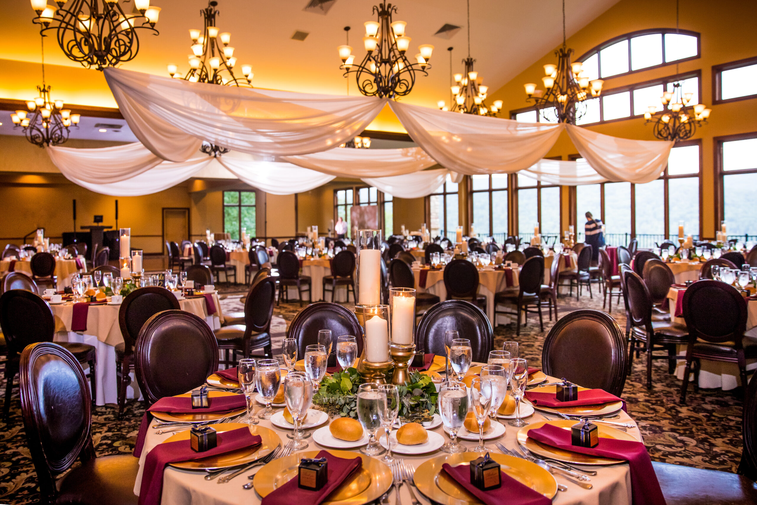 Experience your dream royal wedding at Terraview at Chapel Terra, where cascading waterfalls, formal gardens, majestic mountains, and a towering stone wall create a picturesque setting for your special day. The iron dome gazebo offers a customizable backdrop for your ceremony, while the breathtaking panoramic views from the overlook provide an ideal spot for formal photos and cocktail hour. Indoors, the Conservatory with its 22’ stone hearth and views of the Cherry Valley Wildlife Sanctuary offers an intimate ceremony option. With a stone castle façade, Terraview sets the scene for a grand reception hosting 175 to 350 guests. Enjoy cocktails in the lounge and Conservatory overlooking the garden, while the dining room with its expansive windows and 32’ band shell ensures a night of continuous dancing.